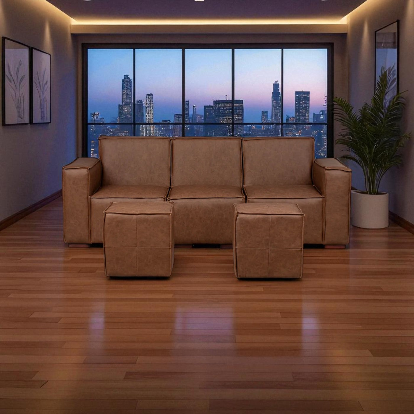 Sofá Modular Fortaleza 3 Cuerpos y 2 Poufs Cuero Reconstituido