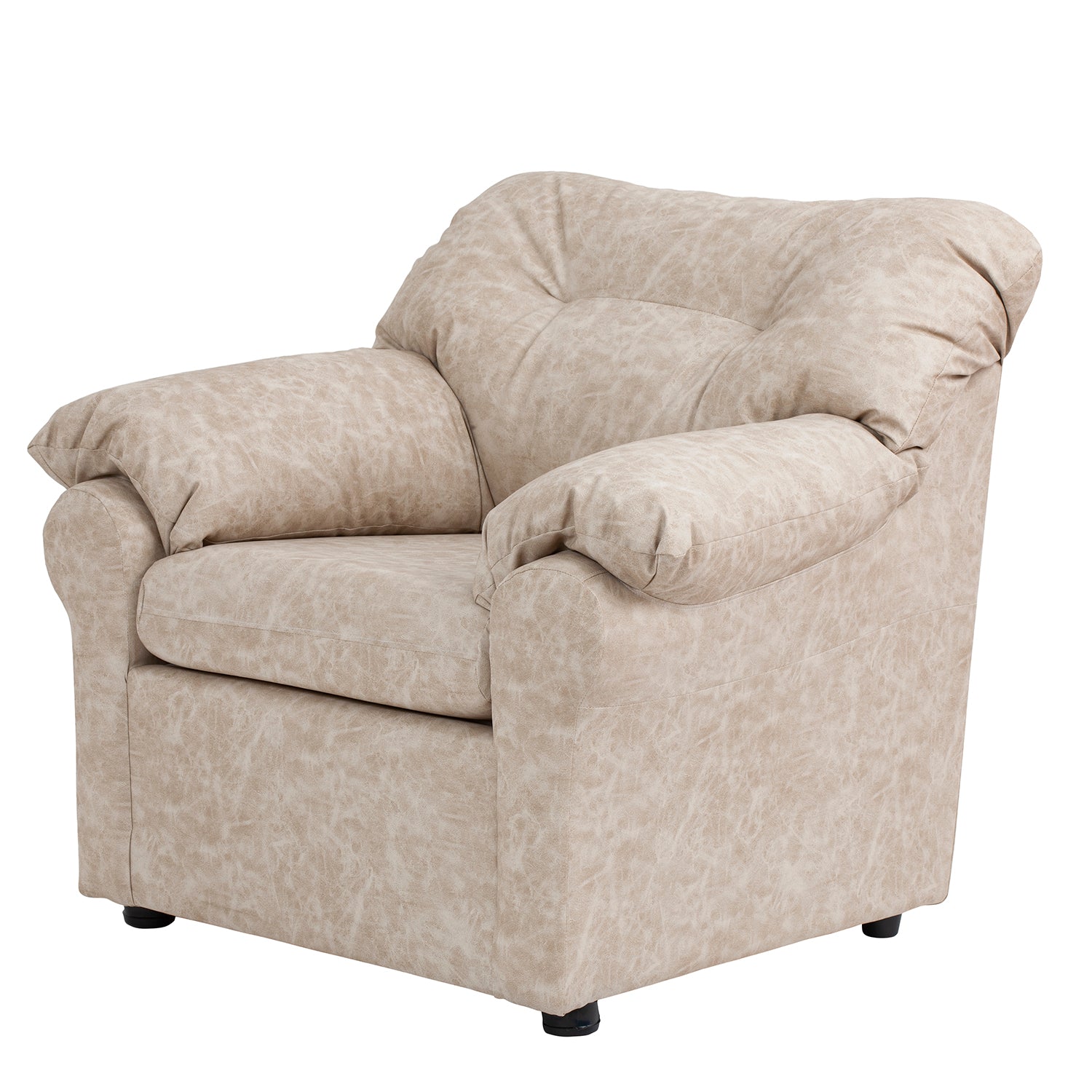 Estructura en madera de pino, con amortiguación de cinta elástica importada. Respaldos rellenos de hollow-fill o algodón sintético y cojines de asiento con bloque de 15 cms. de alta densidad