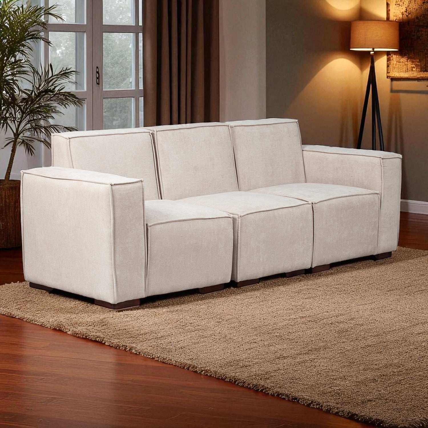 🛋️ Sofá Modular 3 Cuerpos + 2 Poufs en Lino Finesse – Comodidad, Estilo y Versatilidad en un Solo Mueble