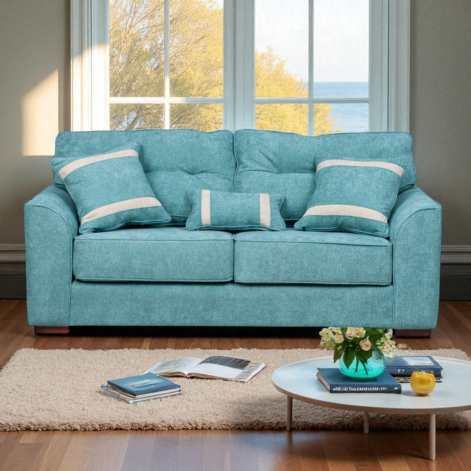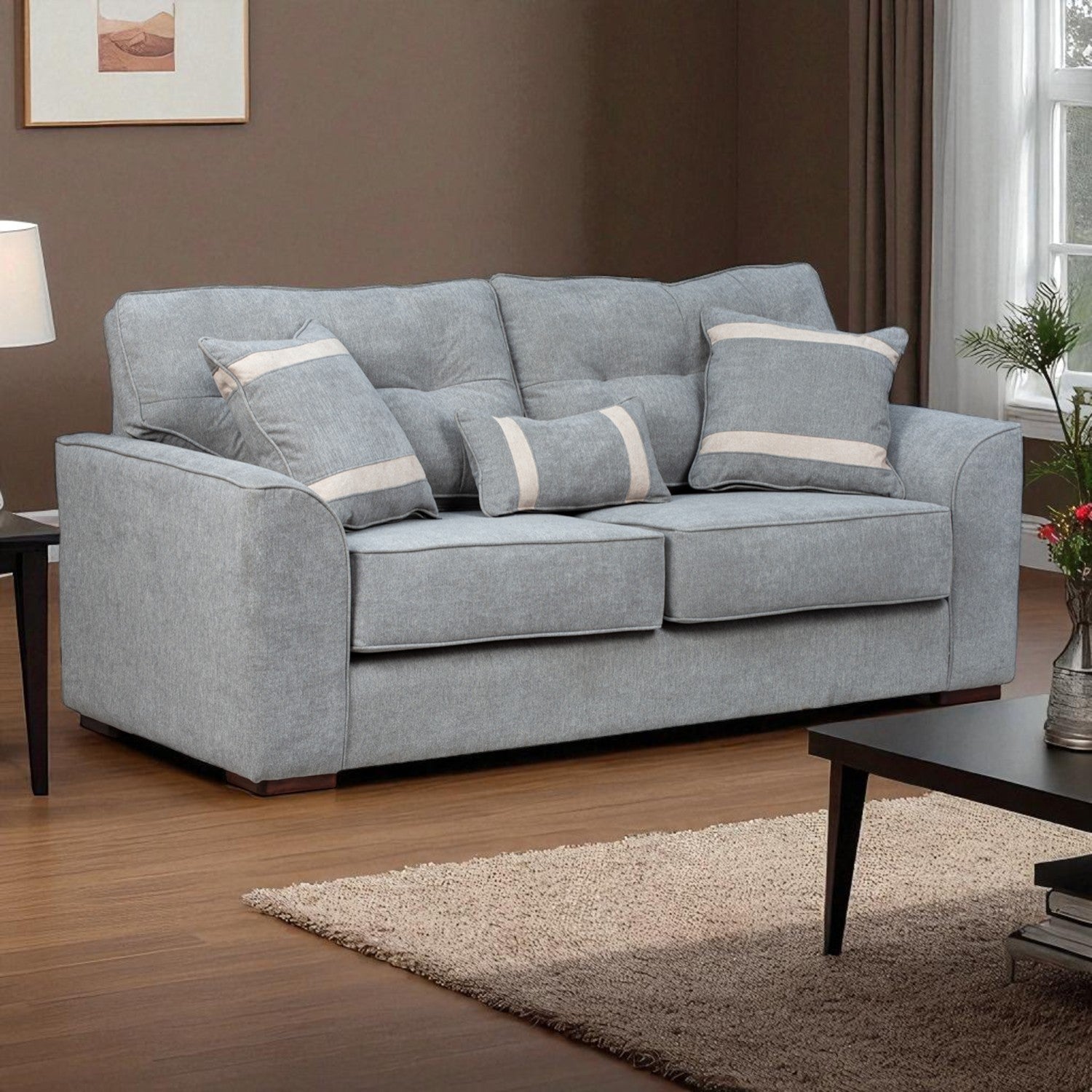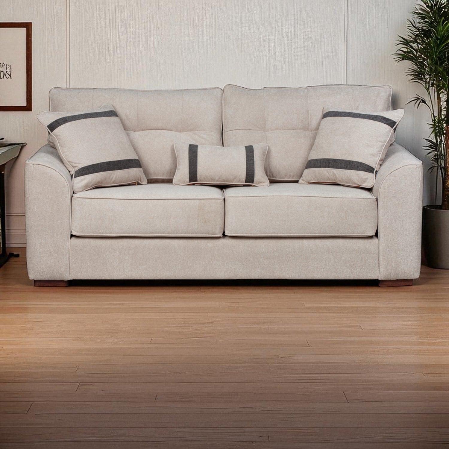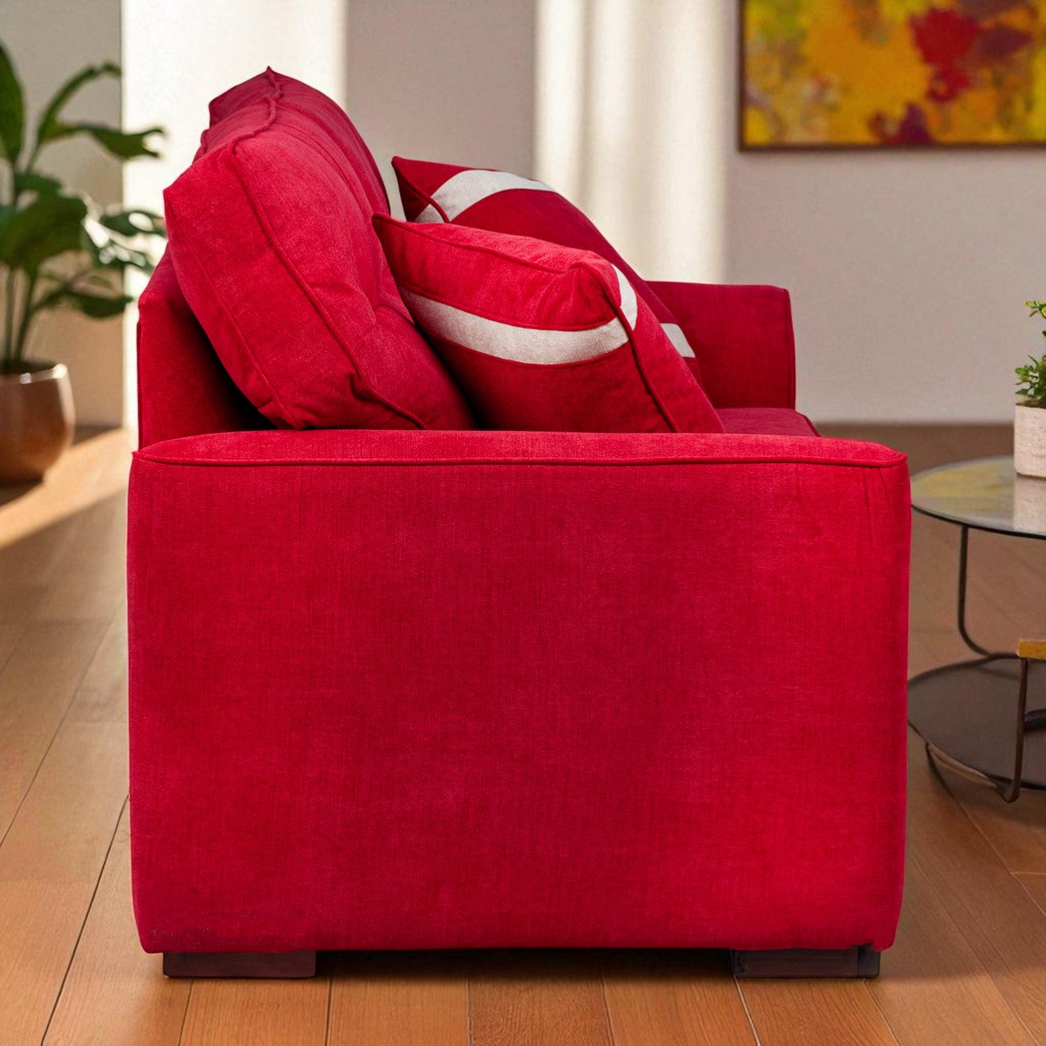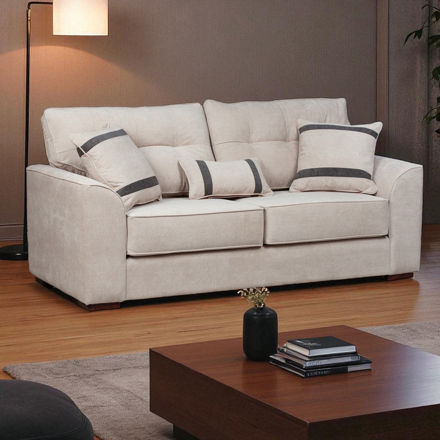 El Sofá Montreal de 3 cuerpos combina diseño envolvente con una comodidad que se siente desde el primer momento. Su estructura sólida y el generoso acolchado en asientos y respaldos lo convierten en el lugar perfecto para relajarse, leer o compartir en casa. Los cojines decorativos incluidos no solo aportan un extra de confort, también elevan su estilo y presencia en cualquier espacio.